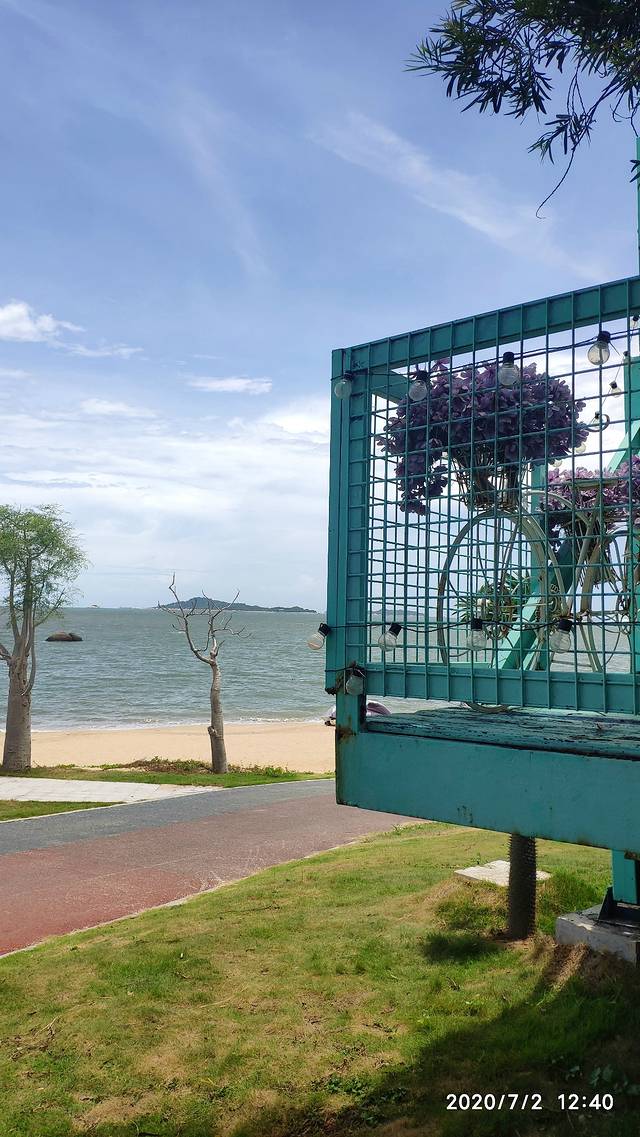 环岛东路塔头段确实是厦门岛最美的路段,树种繁多,花团锦簇,这段起名“观光旅游大道”,旁边的海滩绵长、宽阔,闲置的帐篷和小船点缀期间;海滩和观光大道之间设置了绿色长廊,隔一段会有一个小品或者一段休息亭子,还有卫生间、冲脚池等完善的基础设施。