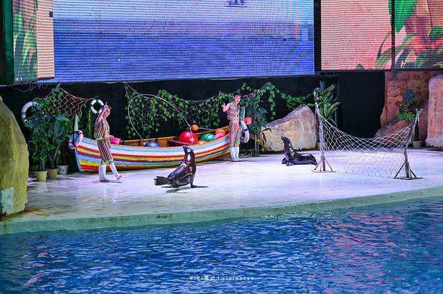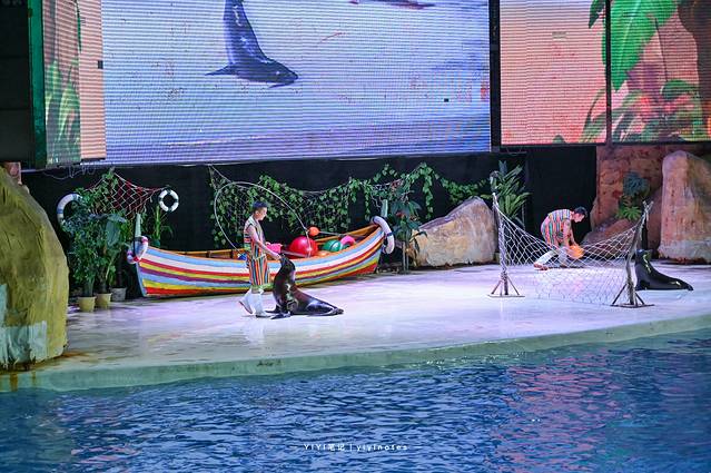 老实说,其实我还是看过很多次海豚表演,但每次都会被深深的震撼到,尤其是海豚们一起冲出水面的那一刻,精彩的让人顿时热血沸腾起来。墩墩更是超爱这个表演,直到海豚们休息后才愿意再接着出去玩。