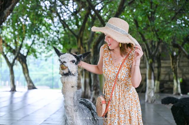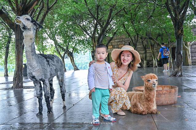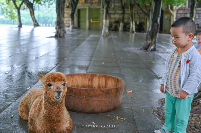 在步行区里,我们第一个看到的就是这只羊驼,圆嘟嘟、胖乎乎的,呆萌的外表也非常可爱。墩墩刚开始看见羊驼时,还是有些害怕,和它保持距离不敢靠近。