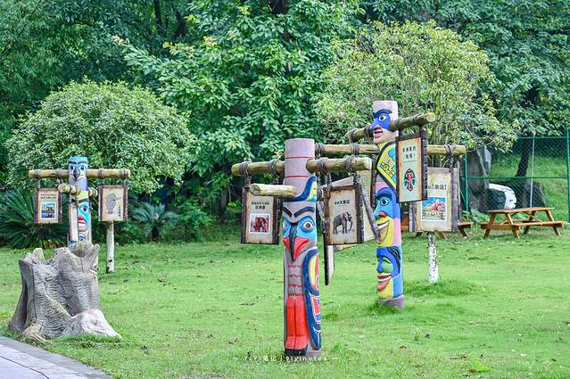 小动物们都是生活在和它们生活习惯有关的环境里,园区内的其他设施设计也很用心,提示牌上的木桩都画上了彩色涂鸦。