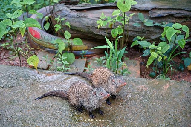在步行区里,还碰到了这两只小可爱。叫做横斑獴又称非洲獴,喜欢在白天出来活动,拍照时它们俩一动不动,感觉就是在等我拍一样,还蛮有趣的。如果想要给他们投食,还可以在旁边购买,鱼10元/条,鹌鹑蛋5元/个。