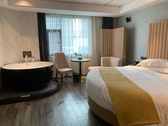 强烈推荐这家酒店呀,服务态度特别好,从一进门就有管家小姐姐给我们送养生茶喝,还会给我们递热毛巾擦手,前台小姐姐也特别好特别礼貌,这边还有一个免费百项管家服务让人特别暖心,很多东西都是可以借用的,酒店里面还有一个小机器人服务员,我们点的外卖都可以送上门,这种感觉超级棒啊!酒店环境也很好,干净卫生,设施设备都很齐全,地理位置也特别棒,处于市中心,离岳阳楼十分钟左右路程,穿过一条巷子就是步行街,特别喜欢这种感觉,出门就能购物,晚上还会送上一碗自己熬制的八宝粥,真的感觉很温馨。