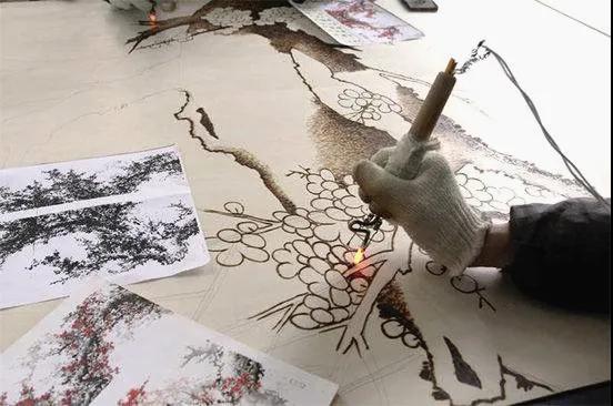 伴随着技艺的发展,烙针升级为专业的电烙笔,根据作画需求可随心调温,载体也不再局限于木质材料,烙画被搬到宣纸、丝绢上。
