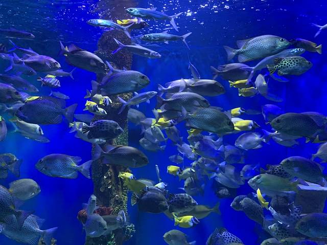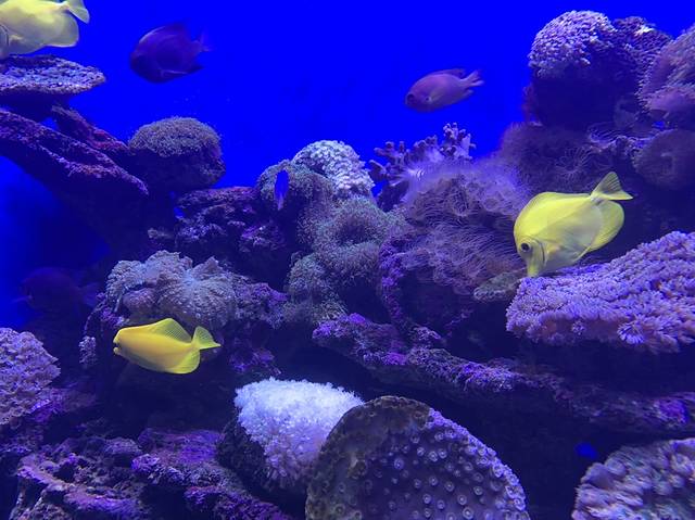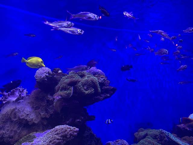 海底世界里面不但展示了各类鱼类、珊瑚、水母等,也有一些陆地上地动物,还有一些水生物的标本。