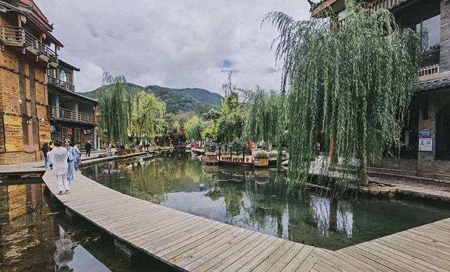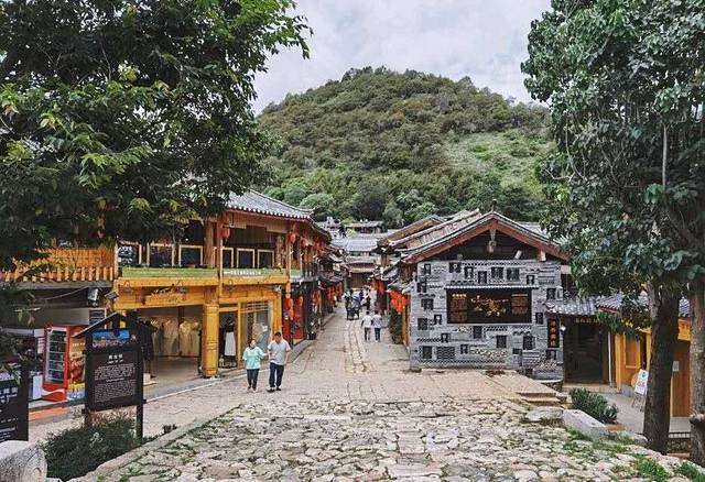 束河古镇,纳西语称“绍坞”,因村后聚宝山形如堆垒之高峰,以山名村,流传变异而成,意为“高峰之下的村寨”,是纳西先民在丽江坝子中最早的聚居地之一。此古镇的人流远不及大研古城,但别有一番风味。其商业化程度不高反而富有一些古朴典雅之感。