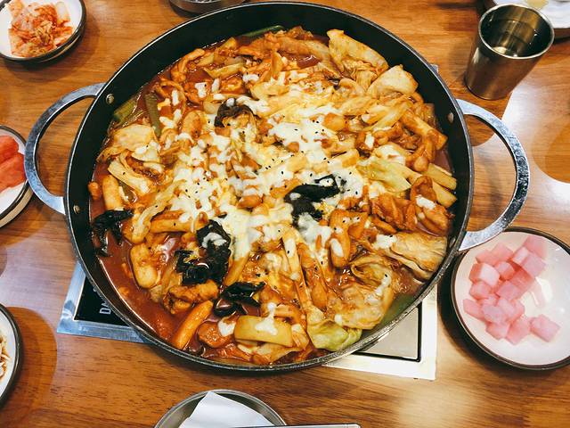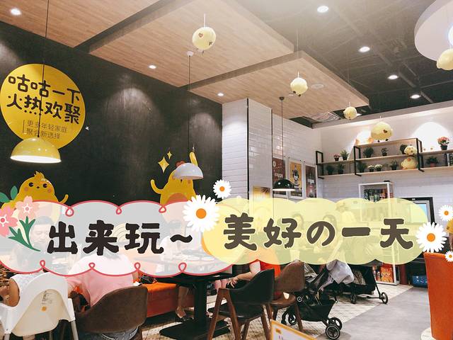 :苹果爱的感觉到处都是黄色的小哑哑好屋顶上,也挂着很多黄色的小牙牙灯光也挺暖的。好像是说有两家分店的。[调皮]「招牌芝士铁板鸡」