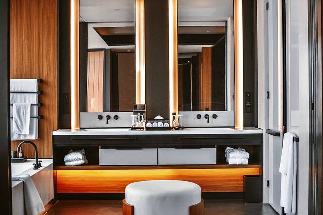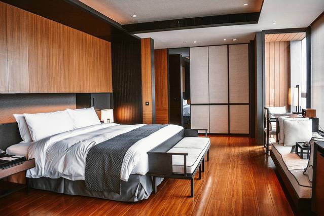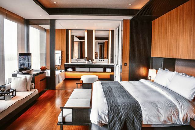 目前酒店拥有152间60 平米以上的别致舒适客房,宽敞的居住空间搭配全景落地窗设计,私享 180°观景视野。