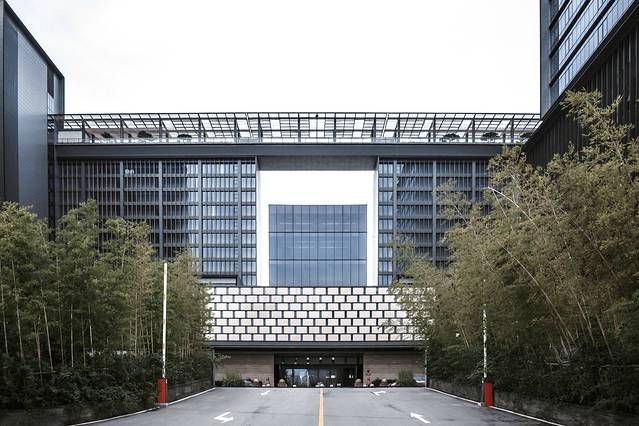 造中国院墙围合的皇城风格,两侧主楼由一道全玻璃帷幕打造的玻璃光廊为核心