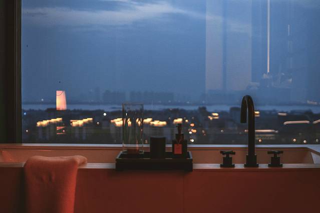 夜里,点个蜡烛灯,躺进这个大浴缸之中,在窗外安谧而又柔美的江畔风景里,温水之中洗涤今日一身的疲惫和风尘。