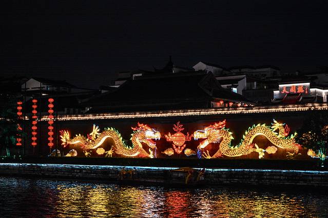 相比来说,夜里的夫子庙步行街更加有看多,因为黑夜和各种灯光的加持下,别致的秦淮夜景~