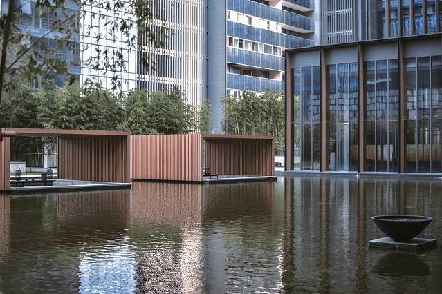 水景和竹林元素在酒店内随处可。竹林环绕,水景相间,现代立体线条风格的建筑,行走之中,真的如走进一处世外桃源,绿竹婆娑,水景摇曳,心境安宁,静享其间。