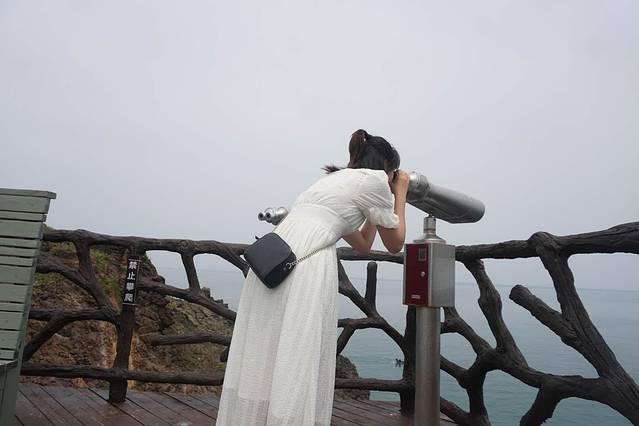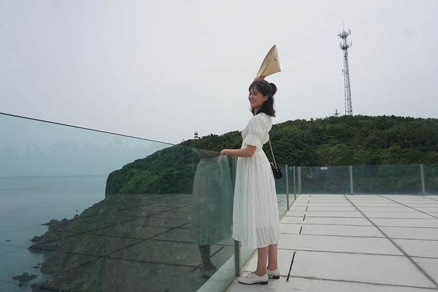 继续向前走,来到悬崖咖啡厅,一座兴建在52米高的悬崖顶端的建筑。坐北朝南,面朝大海,深蓝的海画卷似的铺开在我眼前。四周是玻璃全景观景平台,闭上眼睛,有风在耳边吹过,风里带来了鸟语和遥远的花的香。