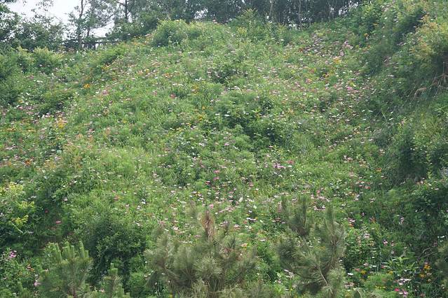 往山中走的入口处,一块写着“那香海•鸡鸣岛”石碑对面,是一大片风中的花海。