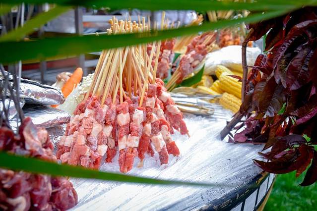 在这可以吃到的一些东南亚和傣味特色的食物,烤肉和撒上孜然,抹上酱料的白吉馍都很好吃,可以一试。