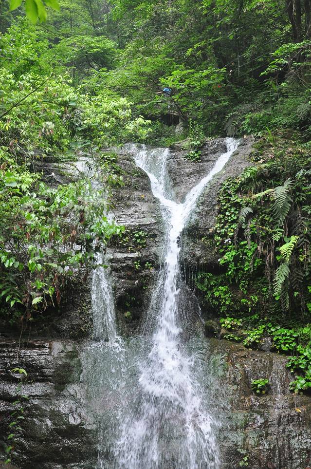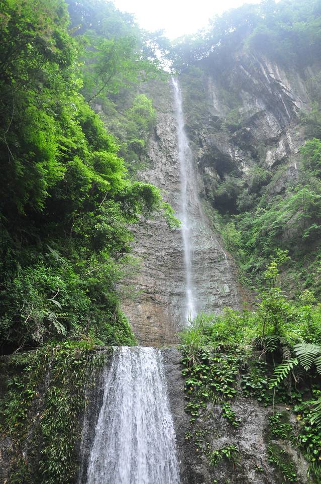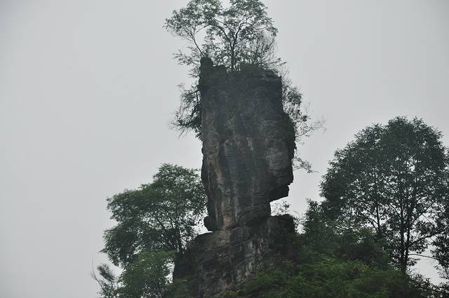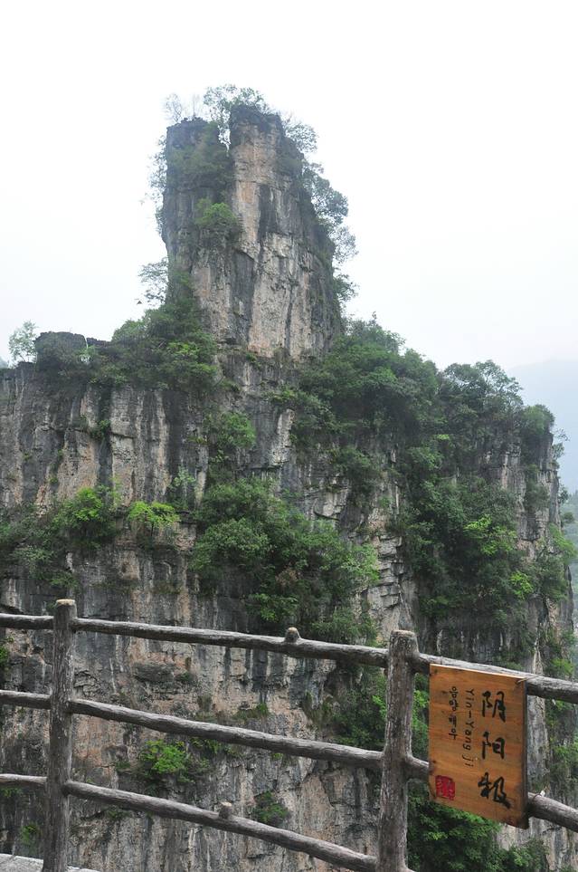 我们乘车7点30分出发,8点40到达长阳县汽车站。本来打算先安排住宿,然后再出发去景区,但是下车未出站便看到去清江方山的小巴,一问,马上就走,只好购票上车,票价10元。随身带的行李,一个双背包,也只有带上,打算存在景区大门。小巴8点55分发车,9点50分到达景区东大门。在到达景区之前,售票员指着车上的一个告示说,车停在景区东门,下车后需转景区车每人10元到西门登山入口,如果不下车,他们可以直接将我们送至西门,也是每人10元。开始我有点搞不懂,什么10元钱,西门东门,将我们送到景区不就得了。后来才明白,清江方山有两个门,班车只到东门,东门是景区出口,上山路是在西门,还必须乘景区车前往西门,乘车费每人10元。售票员的意思是,可以直接用他们的车将我们送至西门,免的下车等车麻烦。我们同意,由于车上就我们两个游客,调头驶向西门。到达西门售票处,门票每人150元,半票75元。天空这时飘下了细雨,门外很多卖雨衣的老乡跟着唠叨,由于我们自己带了伞,一再推辞。此刻,我们才发现,背上的行李无法寄存,因为出口在东门,不可能再返回西门取行李。那只有一个选择,背着行李上山,这是我们唯一的一次背包进入景区,由于大件行李放在宜昌,随身的背包只是洗漱用品,还不算太重。后来的经历也证实了,走西门上山,比东门轻松,没有爬多少山路就到了步行栈道,而在东门下山时,却有高高的台阶,让走西门上,东门下,是有它的道理,不过现在东门正在修索道,将来可能东西门都可以上下了。