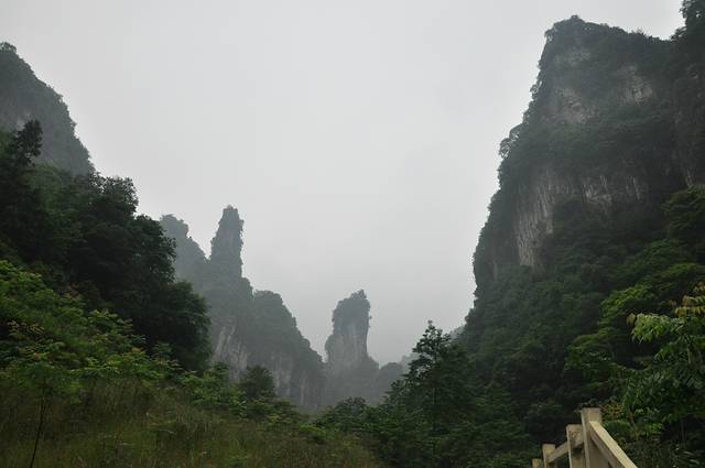 我们进入方山景区时,天上开始下起小雨,但是整个栈道几乎都是沿着山崖延伸,游客在栈道上行进,基本上是淋不到雨。但是后来雨越下越大,待下山时,已成中雨,打着伞,裤腿也被打湿。整个行程下来,需要4、5个小时。由于雨天,景色大打了折扣。但是那一种雨朦胧,月朦胧的感觉,也别有情趣。