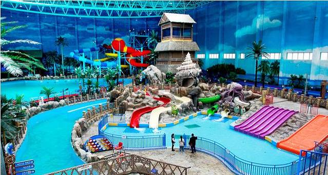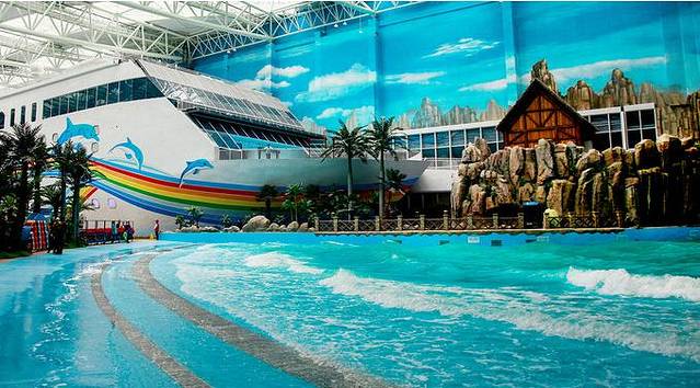 充满海洋元素,仿佛将大海搬到室内。游客可以不分季节感受水上乐园的魅力,是目前山东最大的室内水乐园。水世界包含17个水上娱乐项目,一票制政策,游客可以尽情体验水的魅力,来这里体验所有玩水的方式!