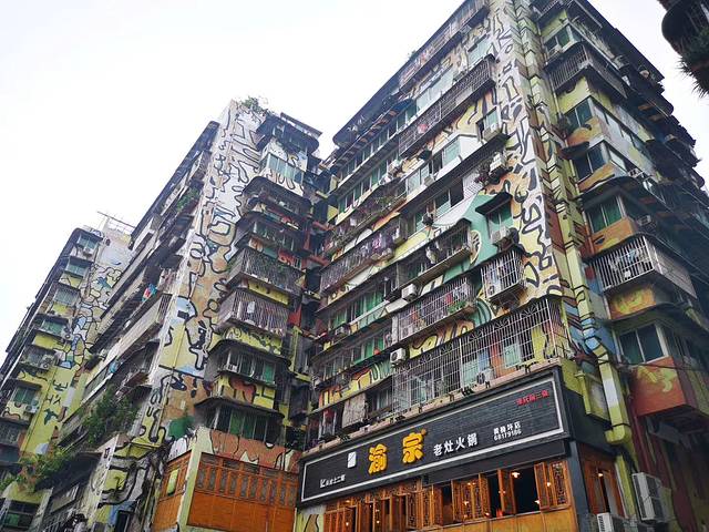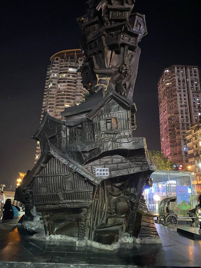吃完饭沿着街道下来就到了洪崖洞这边,途中路过了国泰艺术中心