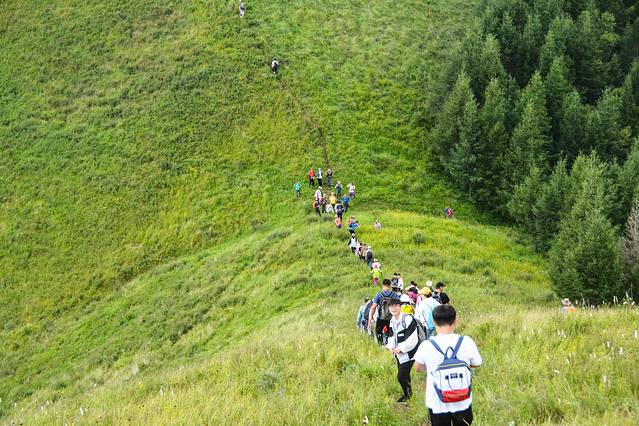 一路高低起伏,一字长蛇般的队伍蜿蜒前行