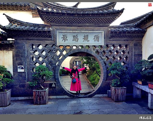 潇潇洒洒游荡到建水古城的建新街中段,一座豪华大宅门呈现在眼前,建筑并不高大,但细细观看,慢慢品味,却能发现其特色。其精巧玲珑的建筑非同一般。灰瓦青石木梁木柱,给整个庄园增添了几多古韵,半边的建筑群都是按八卦方位布局。竹、兰、梅、桂四院单独成院,又院院相连。绣楼也很鲜明的显示出大家闺绣的品味,渗透着浓重的中原文化。据导游介绍这里就是清末乡绅朱渭卿兄弟建造的豪宅和宗祠,建水鼎鼎有名的朱家花园。朱家花园坐南朝北,占地2万多平方米,其中建筑面积5000多平方米,主体建筑呈“纵四横三”布局,为建水典型的“三间六耳三间厅,一大天井附四小天井”式传统民居的变通组合体建。房舍格局井然有序,院落层出迭进,计有大小天井42个,房屋214间。整组建筑陡脊飞檐、雕梁画栋、精美高雅。庭院厅堂布置合理,空间景观层次丰富且变化无穷,形成“迷宫式”建筑群,人称滇南大观园。