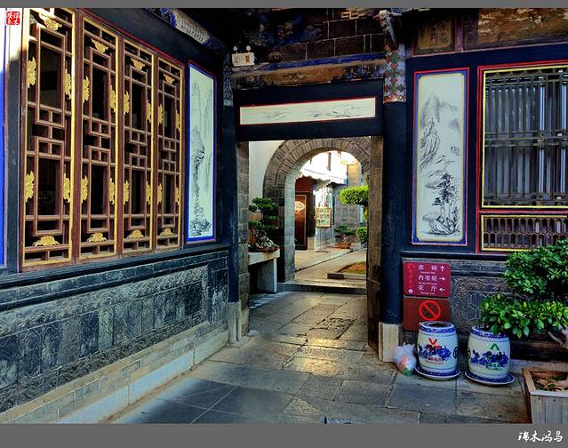 我们怀着好奇的心理步入宅院的垂花大门。左侧沿街的10间“吊脚楼”与其后的“跑马转角楼”相连,是当年的帐房和资供应铺面等,是朱家经营进出口贸易,买卖大锡、洋纱布匹、食盐、烟土的“朱恒泰”总商号。右侧前为家族祠堂,后为内院。祠堂前有水池,水上有戏台、亭阁、庭荫花木等。整组建筑的正前为三大开间的花厅,左右两侧为小姐“绣楼”。花厅前是花园,左右对峙透空花墙,将其自然分隔为东园和西园。花园正前有荷池,树丛,苗圃,花圃散布其间,形成一座既典型而又富地方特色的南方私家园林。朱家花园内雅外秀、形制规整、布局灵活,空间丰富、层次渐进,环境清幽、色彩淡雅、装修有度、结构统一,在丰富的形式中包容了深刻的文化内涵,是内地文化与边疆文化相结合的产物,具有较高的建筑艺术价值。朱家花园院落层进叠出,房舍鳞次栉比;翘角转椽,陡脊飞檐,屋面反曲有举折呈流线型;四十二个用青石板铺地的大小天井,几百道木门花窗、画轩雕栏,让人眼花缭乱;造型奇美,错落有致,曲径通幽,富贵而不失风雅。朱家花园是建水珍贵的建筑历史文化遗产,是汉族建筑艺术和当地少数民族建筑艺术相结合的产物。雕刻绘画吸纳了少数民族的内容和技巧,增添了特色。水上戏台使观众感到空气清新。40多个天井增添了采光面。门窗雕刻精细,内容多样,既有利于通风,又使人感到美观。室内陈设均是清代风格的紫檀木雕,朱家花园的建筑艺术和技巧、布局和设计、雕刻和彩绘等在今天的建筑中仍然有许多内容值得继承和借鉴,对于推进民族建筑艺术文化和装饰文化有重要的作用。朱家花园是一个让人震撼的整体,见之让人想起颐和园,想起《红楼梦》里的大观园。说让人震撼是有原因的,一是西南边陲能出现这样大规模的建筑本身就让人惊叹;再是其为私家豪宅更令人嘘嘘,三是其建筑中的人文、地理和工艺水平之高更是让人难以想象。可以这么说,临安古城如果没有朱家花园,那是不算出众的,至少是一个潮流演变的里程碑。 如此巨大规模而又保存完好的民居建筑群在国内实属罕见。原国家文物局局长孙铁青曾挥毫题词:“朱家宗祠,华丽民居,旅游开放,建水一奇”。 威震全省的朱氏家族,作为一代卓越的商宦富豪,他们的的豪宅给后人留下的遐想太多,甚至就是神话了。