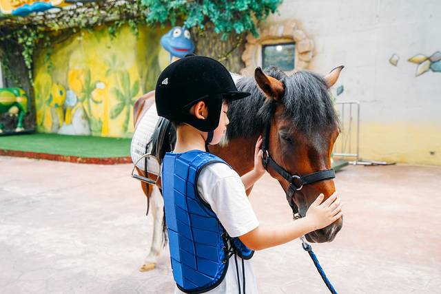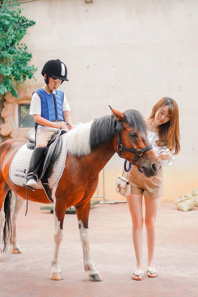 除了免费项目,在5楼儿童遛马场,50元便可以骑上小马遛上一圈,带上防护头盔,穿上防护服,工作人员悉心指导,龙龙对乖巧的小马爱不释手,于是又骑了一圈才作罢。