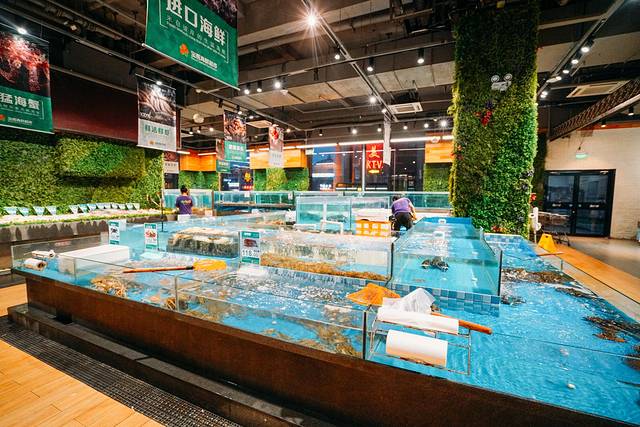 玩累了可以在一楼海货工坊歇歇脚,吃些海鲜,龙龙最感兴趣的还是各种海货产品,在水箱旁仔细研究了许久。