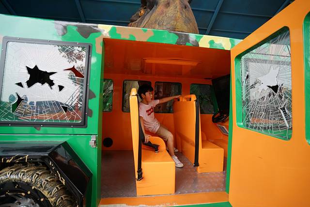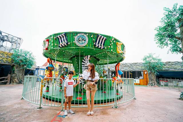 五楼露天平台,恐龙主题的探险项目、海盗船等都在这样的楼顶,远离地面的刺激项目,惊心动魄指数upupup。