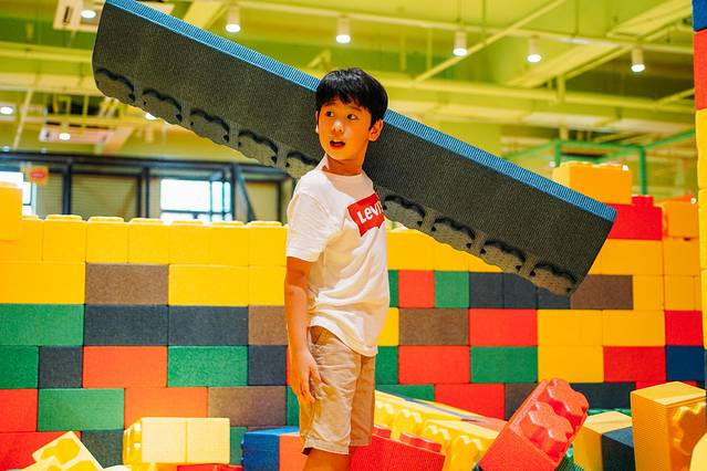 小小工程师上线,将大块大块的积木,左搬右移,很快便垒起了城墙,看来平时玩乐高的功底这时都发挥了出来。