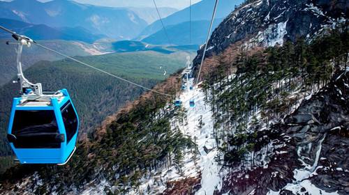 乘坐大索道,到达玉龙雪山非常的美,全程可以看到白雪皑皑。