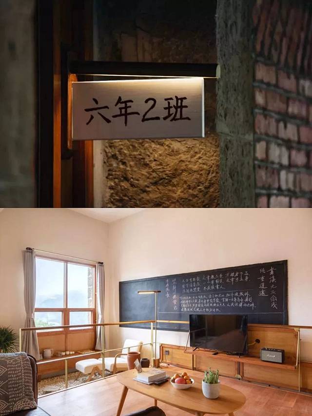 我很喜欢客房的设计,每个房间由教室改造,门口挂着几年几班的门牌。原木色的家具、红砖背景墙和黑板,都保留着几分年代感。客房外有着大片农田和空地,是学校曾经的“操场”,在这里拍一组校服毕业照,颇有《匆匆那年》的味道。还可以在操场上踢球、嬉闹,在泳池里比赛游泳,青春最难能可贵的地方,就是时刻都充满着活力与朝气。
