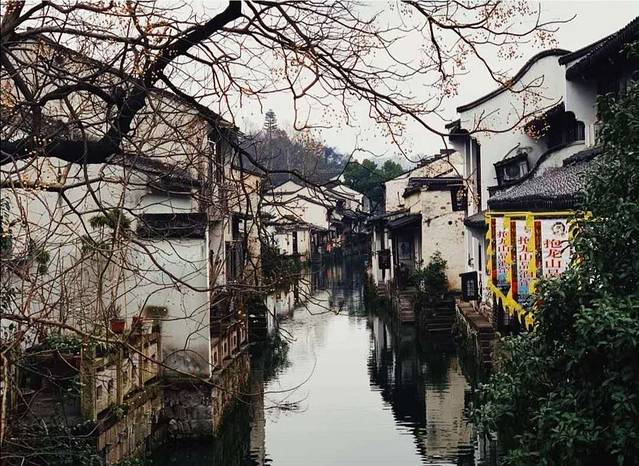 小桥伴流水,粉墙掩花窗,古街伴乌篷。