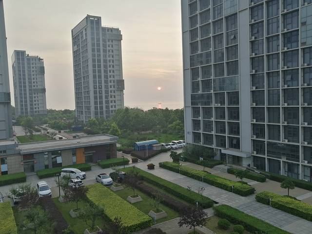 下了高速,已经是阳光、蓝天、白云、绿地了!