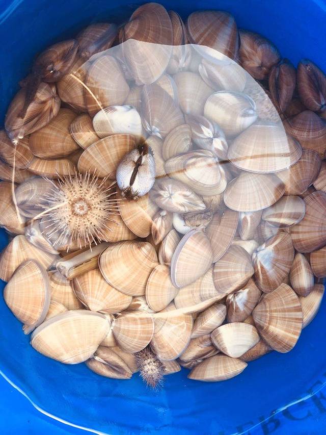 我带的小蓝桶也有半桶收货!海胆是我捡的哦!