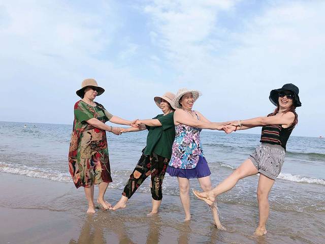 大姨、二姨、老妈和舅妈她们在海边漫舞!哈哈哈哈哈~广场舞的精神在于没有广场也要舞起来!没有困难,创造困难也要跳!