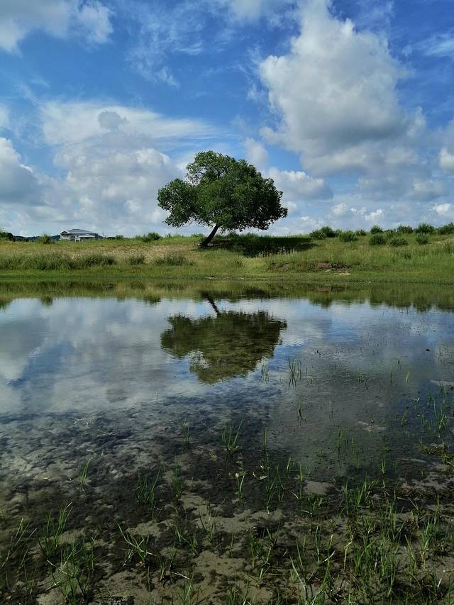 公主湖,天空、白云映着湖水,格外美丽!这里的美景多了一份安逸!