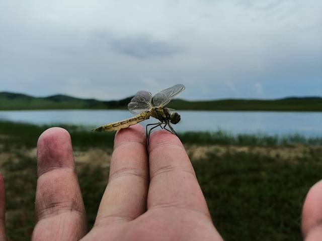 到了野鸭湖,赶上好多刚刚脱壳的蜻蜓,还没来得及飞!