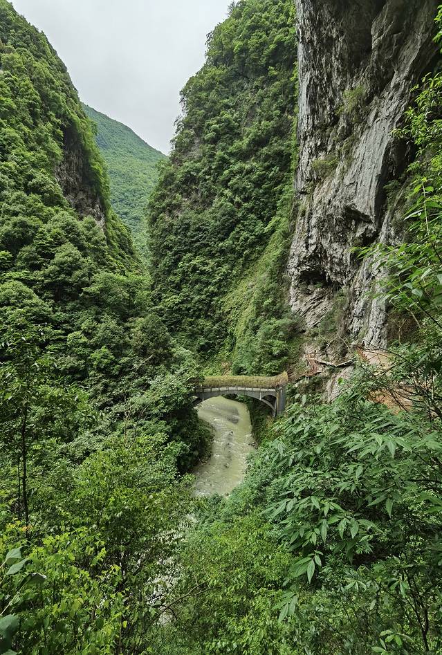 下到河边以后,有很长一段时间都是一直在沿着河道走,很舒服,沿途经过风雨桥、龙隐宫(龙隐宫是一个天然溶洞,经过风雨桥进入,游玩后折回)、三锁桥(锁缘、锁心、锁情三座铁索桥)。