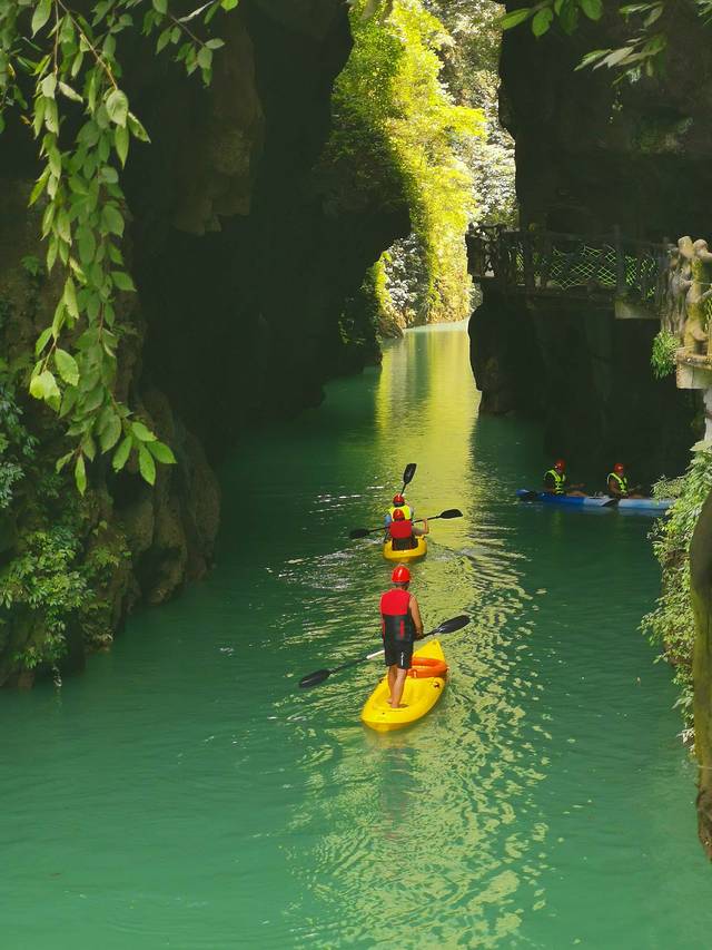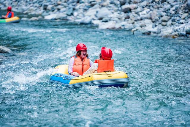 盛夏之际,在锁心桥下,设有漂流码头,可体验河谷漂流(需提前跟景区预约)。漂流全长约3公里,穿戴好安全装备,一舟两人,时而激流勇漂,时而慢游浅划,谷底清凉舒爽,消暑又刺激,漂流的终点就设在游客中心(非游客接待中心)。