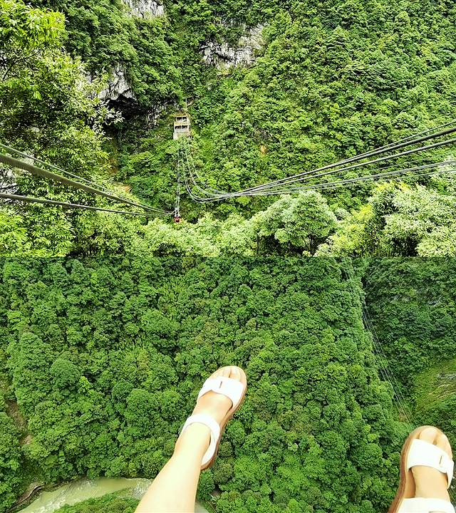 下到谷底有近千级台阶,可以选择徒步下山,也可以通过溜溜滑道和高空滑索(共两段)直达山脚,当然玩这个是需要勇气的。