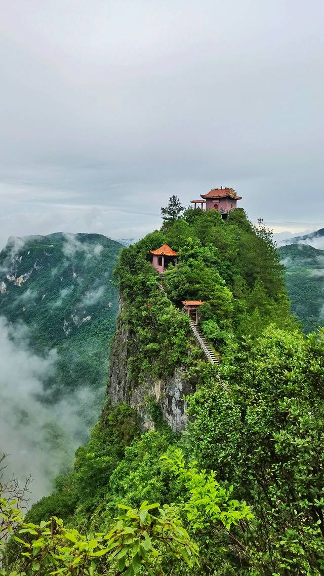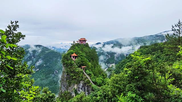 巴人河景区内植被茂盛,遮天蔽日,沿着步道在景区行进,第一站到达的是情郎峰。我去的时候正好下了点小雨,仙气飘飘。三面绝壁,非常险峻,只有一条约1米宽的游步道可以上去。