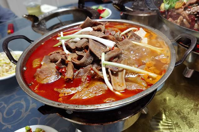茶店牛肉以长期放养在当地野外天然绿色无污染的环境下未满一周岁的小黄牛肉做主菜,肉质鲜嫩,辅料以当地土家族泡菜萝卜,魔芋豆腐,巴东五香豆腐干切块添加葱姜蒜花椒等调味品,用土榨菜油干锅烧制而成,另配以16至18小碟独具土家特色的小菜,按进餐人数收费,一般大约是50元/人,跟恩施别的火锅可以加小菜不一样,茶店牛肉的牛肉锅都可以无限续加的哟,用茶店人的话说;吃得好,吃得饱,还想吃,有味道。