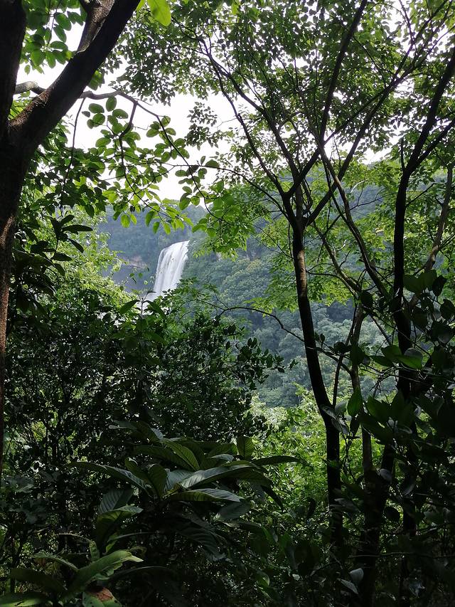 在茂密的林木间拾级而下,沿途山峦叠嶂。空气中充满了水汽,树木在湿润的环境中葱茏秀丽,各色各样的植物叶子鲜翠欲滴。