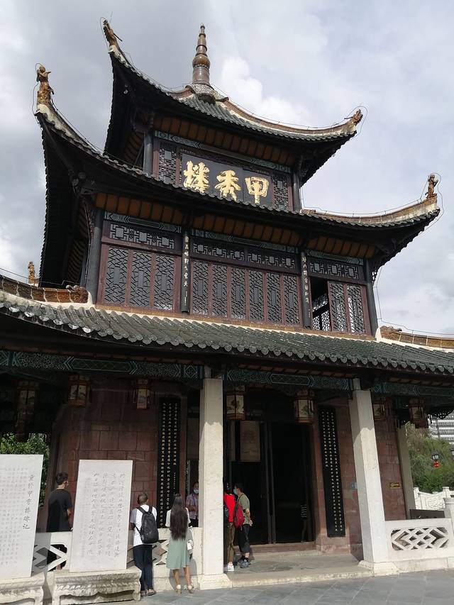 甲秀楼矗立在南明河中的万鳌矾石上,取独占鳌头之意,名“甲秀”,寓意科甲挺秀之意。