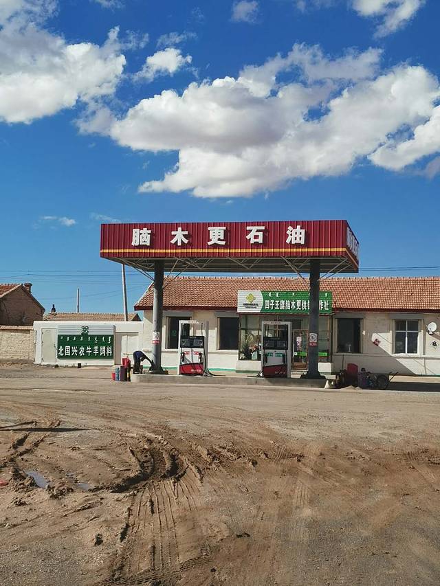 从这个加油站往东走(这张图为视角的右手边),顺路走。过一个向右的转弯,转过弯不远第一个岔口,还是这条路的东侧(你车头方向的左手边)有一条小柏油路,这条路一直通向大红山,路一直延伸到山顶平台就戛然而止了!从脑木更苏木到大红山还有40公里路。如果你看不懂我的描述,只要到了脑木更苏木找当地人问路就好了!