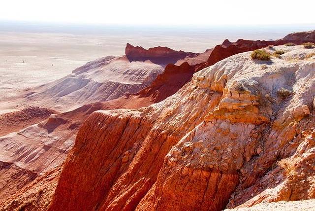 大红山,又称脑木更山,其实它叫山可不是山!这种地貌学名为戈壁草原台地断崖,地质学界称为第三系标准地层剖面,南北长约十五公里,东西宽约十公里,高处海拔高度1120多米,因砂土土质发红,从阶下望去状似红山,不管远近观瞻都极为雄奇壮观。