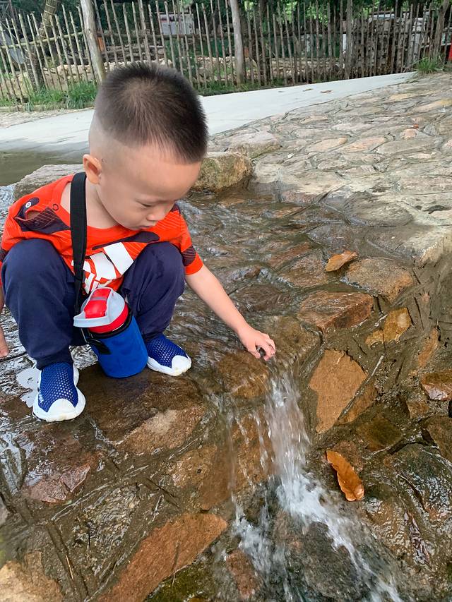 我家的小朋友最开心😃见到从路上横穿而下小溪开心快乐坏了,小脚直踩水衣服瞬间换三套,还见到大公鸡、小孔雀惊喜的不得了……跟我一起摘树莓、摘苹果体验了一下不一样的生活!