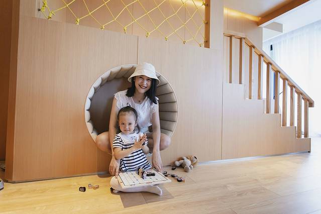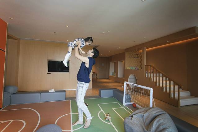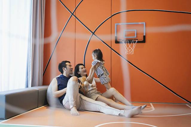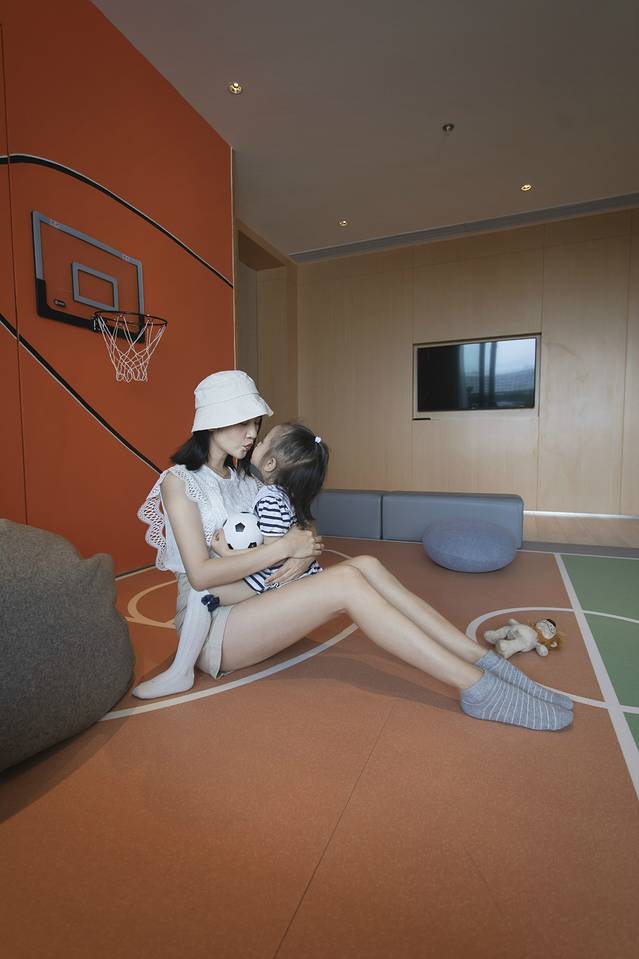 300多平米的超级亲子房,布局干净利落,两个带独立卫生间的房间连同阳台、客厅和厨房等快超过300平米。我们也是首次入住了这样“豪”的亲子房,重点是把小篮球场和小足球场都搬来客厅来了~和孩子玩耍、拍照两不误,踢足球、下象棋、捉迷藏、看绘本……真正地不用出门,也能带娃好好玩耍~