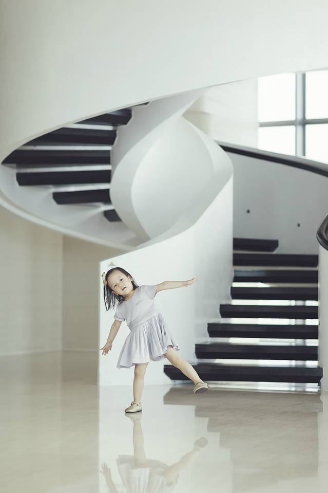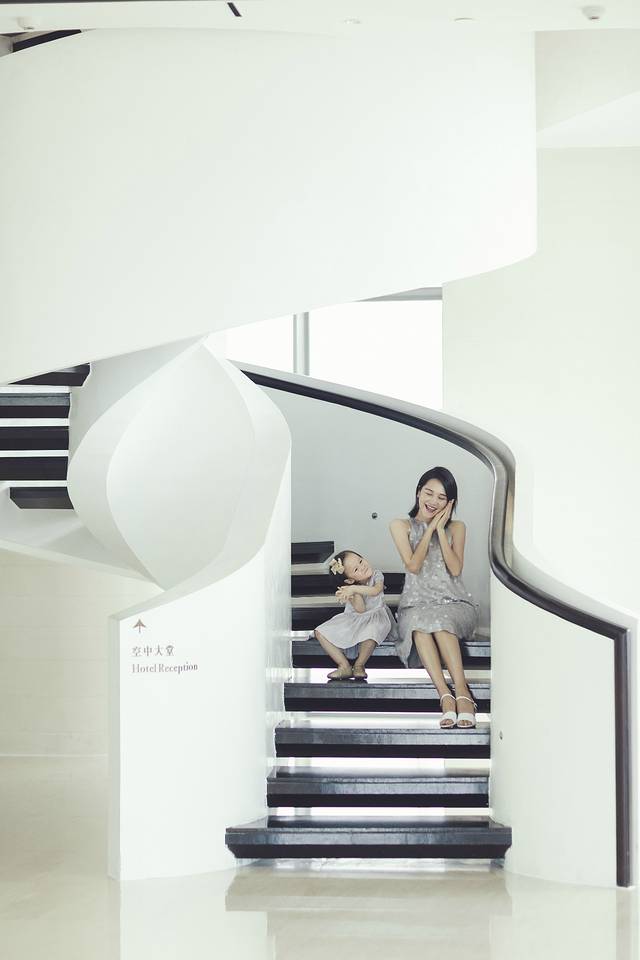 空中大堂的黑白旋转楼梯真的太适合拍照,在三亚合作过的墨西哥摄影师帮忙拍下这组唯美的照片。