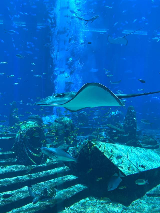 水族馆门票人均200左右,它的顶部箱体是露天开放,太阳光射下有不同的光感,加上里面的海洋生物种类丰富,可以满足孩子的好奇心。像爱莉这样年龄段的小孩,基本上对水族馆毫无抵抗能力。而户外巨大的水上乐园就是大点年龄段小孩和大人们的玩乐天堂,不是住在亚特兰蒂斯酒店的,我也建议来这里玩水。